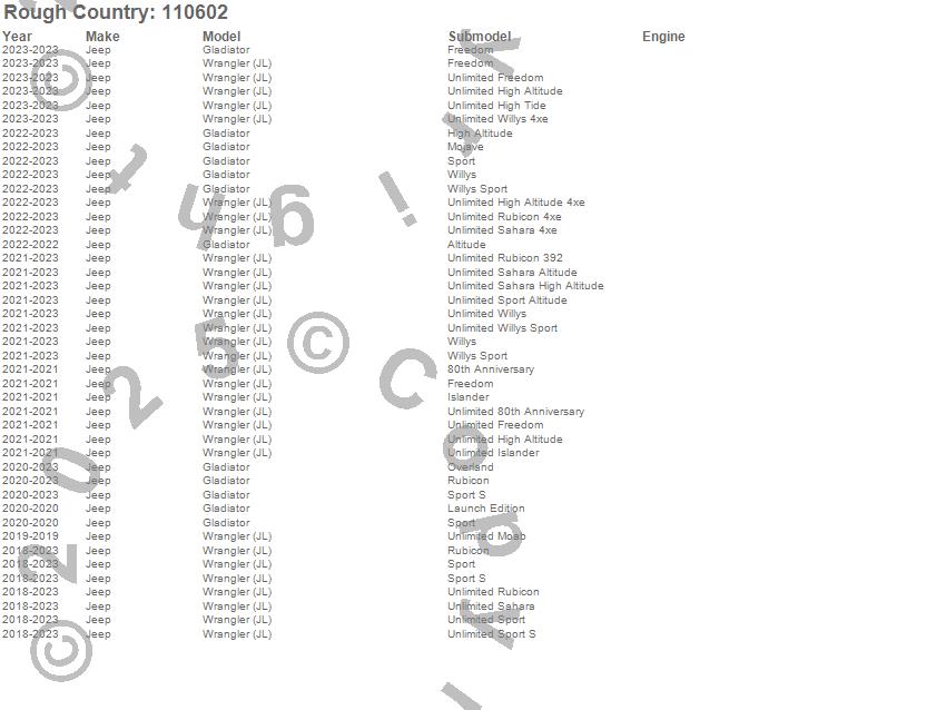 Below is an abbreviated list of applications for the Control Arm Relocation Brackets.Gladiator, Wrangler (JL), Jeep, 2023, 2022, 2021, 2020, 2019, 2018