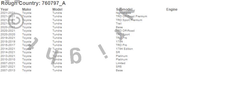 Below is an abbreviated list of applications for the V2 Shock Absorbers.Tundra, Toyota, 2021, 2020, 2019, 2018, 2017, 2016, 2015, 2014, 2013, 2012, 2011, 2010, 2009, 2008, 2007