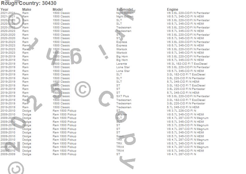 Below is an abbreviated list of applications for the Leveling Coil Springs.1500 Classic, Ram 1500, Dodge, Ram, 2023, 2022, 2021, 2020, 2019, 2010, 2009