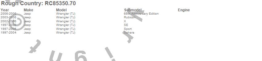 Brand: Rough CountryPart Number: RC85350.70Top-Soft Type: Spice Denim - Vinyl Coated Polyester Cotton - Leak-Proof Windows - Wrinkle-Free Fit - Hook/Loop AttachmentsUPC: 843030157524