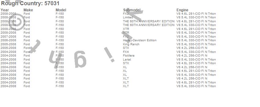 Below is an abbreviated list of applications for the Leveling Lift Kit.F-150, Ford, 2008, 2007, 2006, 2005, 2004