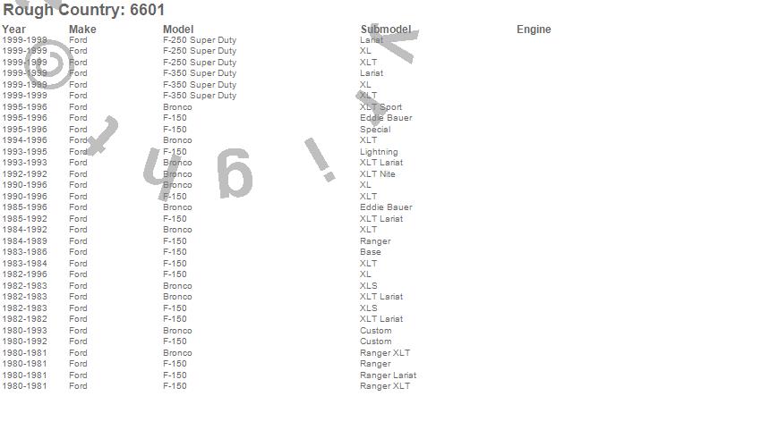 Brand: Rough CountryPart Number: 6601Pitman Arm Type: Maintains Draglink Alignment - Maintains Turning Radius - Fits 4-6 in. LiftUPC: 843030112509
