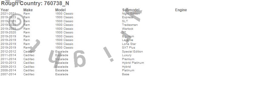 Below is an abbreviated list of applications for the V2 Shock Absorbers.1500 Classic, Escalade, Cadillac, Ram, 2023, 2022, 2021, 2020, 2019, 2014, 2013, 2012, 2011, 2010, 2009, 2008, 2007