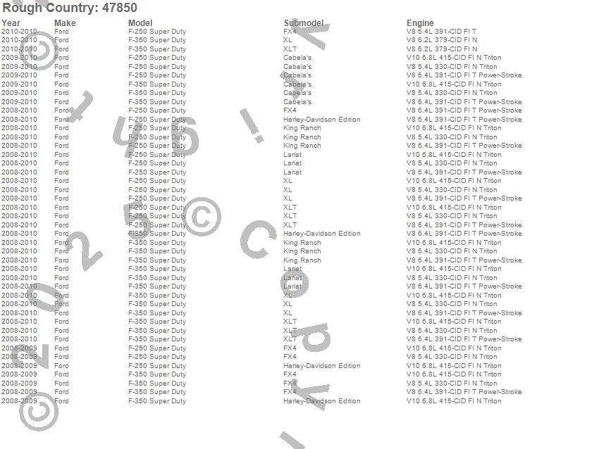 Below is an abbreviated list of applications for the Suspension Lift Kit.F-250 Super Duty, F-350 Super Duty, Ford, 2010, 2009, 2008