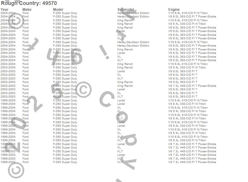 Below is an abbreviated list of applications for the Suspension Lift Kit.F-250 Super Duty, F-350 Super Duty, Ford, 2004, 2003, 2002, 2001, 2000, 1999