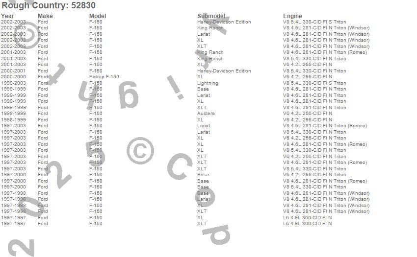 Below is an abbreviated list of applications for the Suspension Lift Kit.F-150, Ford, 2003, 2002, 2001, 2000, 1999, 1998, 1997