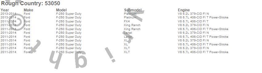 Below is an abbreviated list of applications for the Suspension Lift Kit.F-250 Super Duty, Ford, 2014, 2013, 2012, 2011