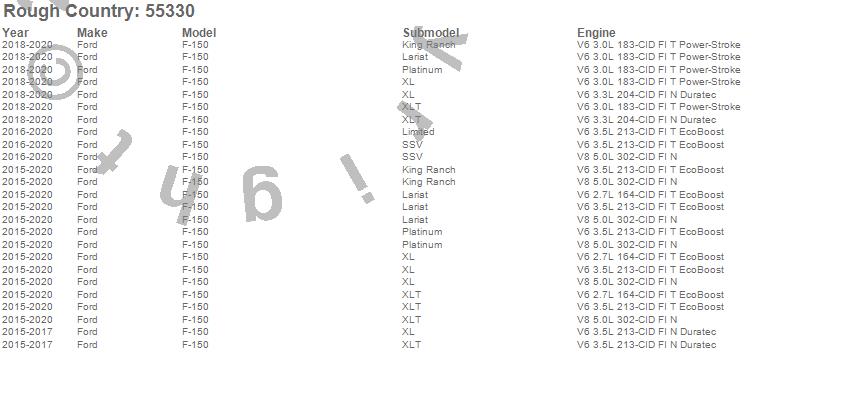 Below is an abbreviated list of applications for the Suspension Lift Kit.F-150, Ford, 2020, 2019, 2018, 2017, 2016, 2015