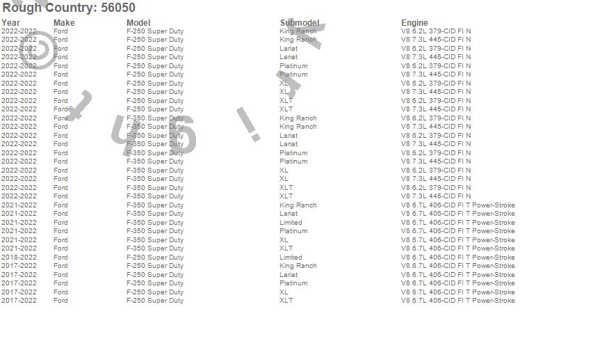 Below is an abbreviated list of applications for the Suspension Lift Kit.F-250 Super Duty, F-350 Super Duty, Ford, 2022, 2021, 2020, 2019, 2018, 2017