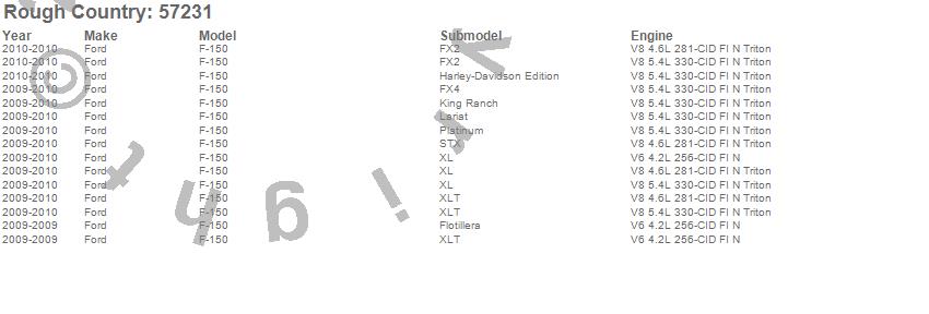 Below is an abbreviated list of applications for the Suspension Lift Kit.F-150, Ford, 2010, 2009