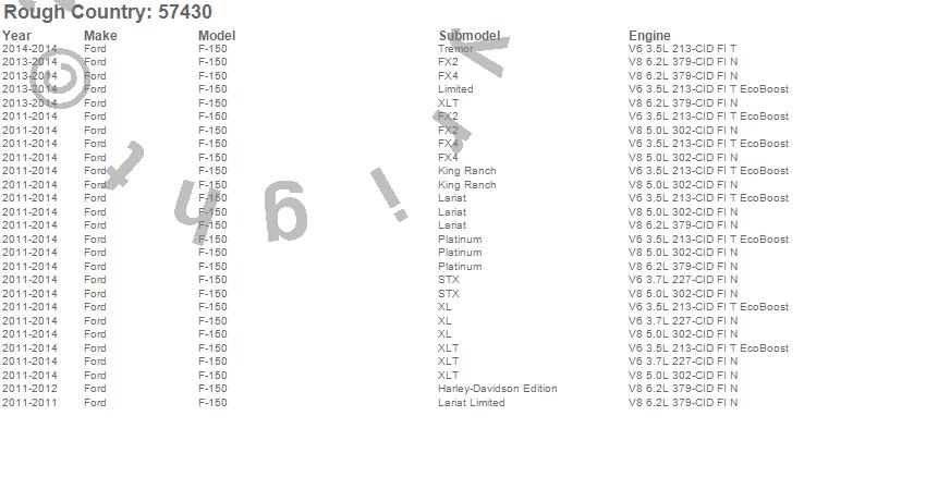 Below is an abbreviated list of applications for the Suspension Lift Kit.F-150, Ford, 2014, 2013, 2012, 2011