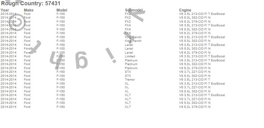 Below is an abbreviated list of applications for the Suspension Lift Kit.F-150, Ford, 2014