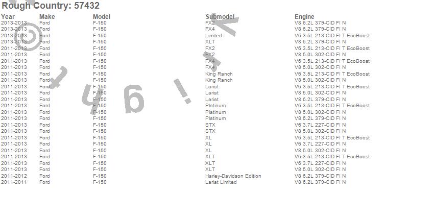 Below is an abbreviated list of applications for the Suspension Lift Kit.F-150, Ford, 2013, 2012, 2011