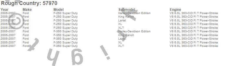 Below is an abbreviated list of applications for the Suspension Lift Kit.F-250 Super Duty, F-350 Super Duty, Ford, 2007, 2006, 2005