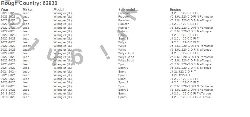Below is an abbreviated list of applications for the Suspension Lift Kit.Wrangler (JL), Jeep, 2023, 2022, 2021, 2020, 2019, 2018