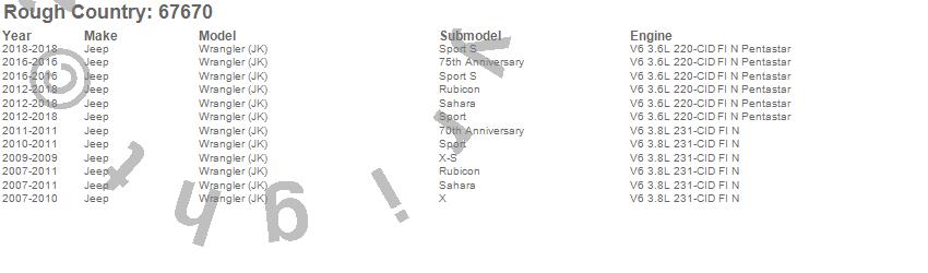 Below is an abbreviated list of applications for the Suspension Lift Kit.Wrangler (JK), Jeep, 2018, 2017, 2016, 2015, 2014, 2013, 2012, 2011, 2010, 2009, 2008, 2007
