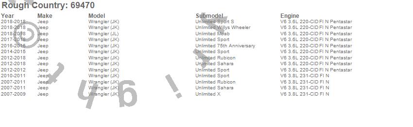 Below is an abbreviated list of applications for the Suspension Lift Kit.Wrangler (JK), Wrangler (JL), Jeep, 2018, 2017, 2016, 2015, 2014, 2013, 2012, 2011, 2010, 2009, 2008, 2007