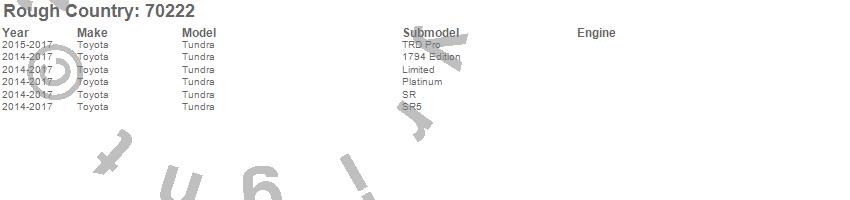 Below is an abbreviated list of applications for the Mesh Grille.Tundra, Toyota, 2017, 2016, 2015, 2014