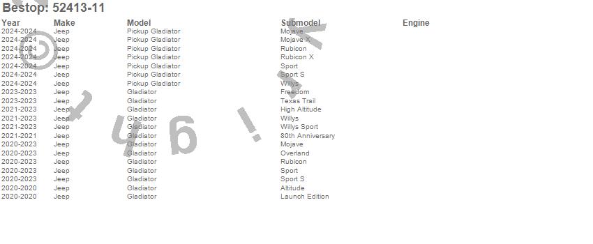 Below is an abbreviated list of applications for the Sun Extended Safari Style Bikini Top.Gladiator, Pickup Gladiator, Jeep, 2026, 2025, 2024, 2023, 2022, 2021, 2020