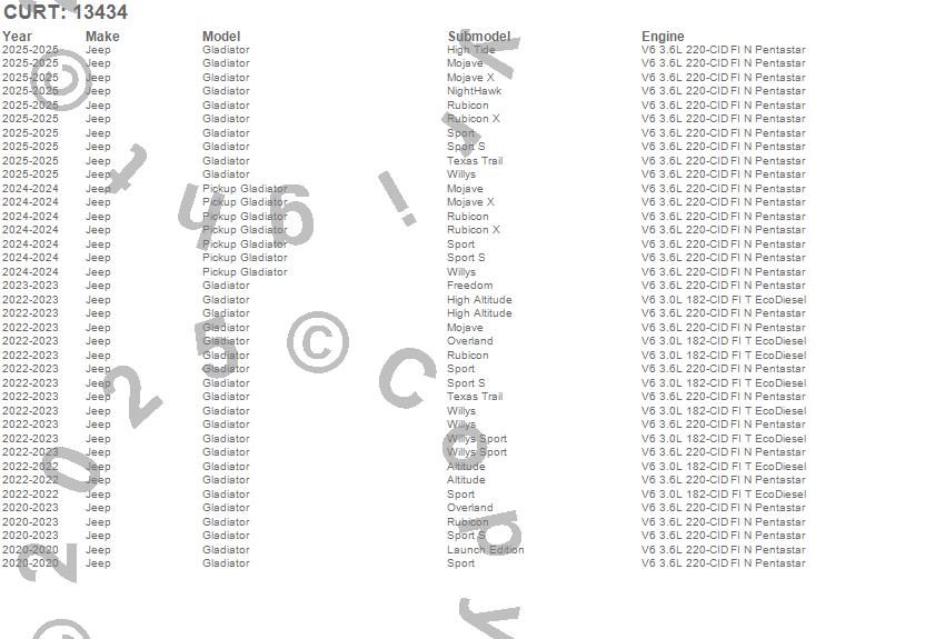 Below is an abbreviated list of applications for the Class III 2 in. Receiver Hitch.Gladiator, Pickup Gladiator, Jeep, 2025, 2024, 2023, 2022, 2021, 2020