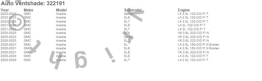 Below is an abbreviated list of applications for the Aeroskin Smoke Hood Protector.Acadia, GMC, 2023, 2022, 2021, 2020