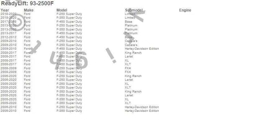 Brand: ReadyLiftPart Number: 93-2500FShock Absorber Type: UPC: 804879610328