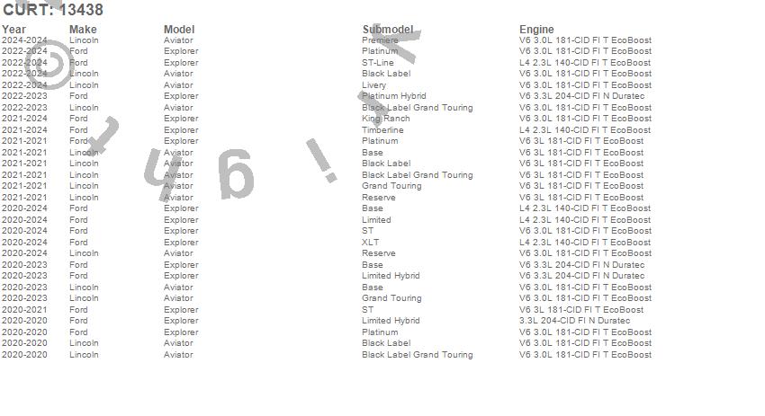 Below is an abbreviated list of applications for the Class III 2 in. Receiver Hitch.Aviator, Explorer, Ford, Lincoln, 2026, 2025, 2024, 2023, 2022, 2021, 2020