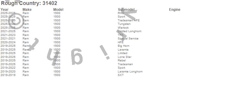 Brand: Rough CountryPart Number: 31402Control Arm Type: For 3-3.5 in. Lift - ForgedUPC: 843030188146