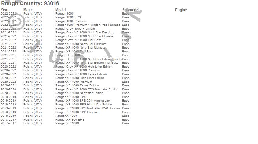 Below is an abbreviated list of applications for the LED Kit.Ranger 1000, Ranger 1000 EPS, Ranger 1000 Premium, Ranger 1000 Premium + Winter Prep Package, Ranger Crew 1000, Ranger Crew 1000 Premium, Ranger Crew XP 1000 EPS Northstar Edition, Ranger Crew XP 1000 High Lifter Edition, Ranger Crew XP 1000 NorthStar Edition Trail Boss, Ranger Crew XP 1000 NorthStar Premium, Ranger Crew XP 1000 NorthStar Ultimate, Ranger Crew XP 1000 Premium, Ranger Crew XP 1000 Texas Edition, Ranger Crew XP 1000 Trail Boss, Ranger XP 1000, Ranger XP 1000 EPS, Ranger XP 1000 EPS 20th Anniversary, Ranger XP 1000 EPS High Lifter Edition, Ranger XP 1000 EPS Northstar HVAC Edition, Ranger XP 1000 EPS Premium