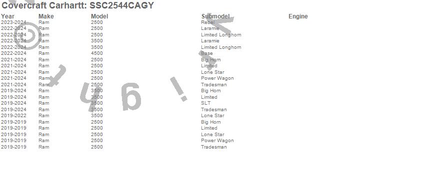 Below is an abbreviated list of applications for the Covercraft Carhartt SeatSaver.2500, 3500, 4500, Ram, 2025, 2024, 2023, 2022, 2021, 2020, 2019