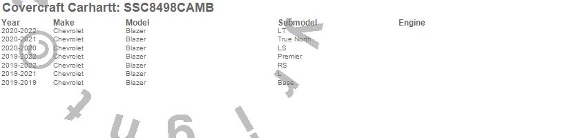 Below is an abbreviated list of applications for the Covercraft Carhartt SeatSaver.Blazer, Chevrolet, 2022, 2021, 2020, 2019