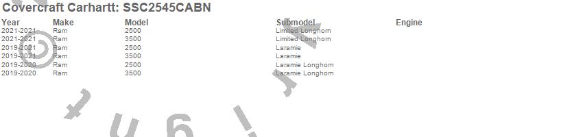 Below is an abbreviated list of applications for the Covercraft Carhartt SeatSaver.2500, 3500, Ram, 2021, 2020, 2019