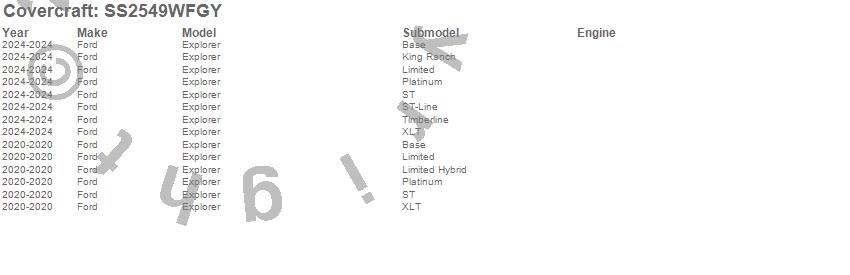 Below is an abbreviated list of applications for the SeatSaver Custom Seat Cover.Explorer, Ford, 2024, 2020