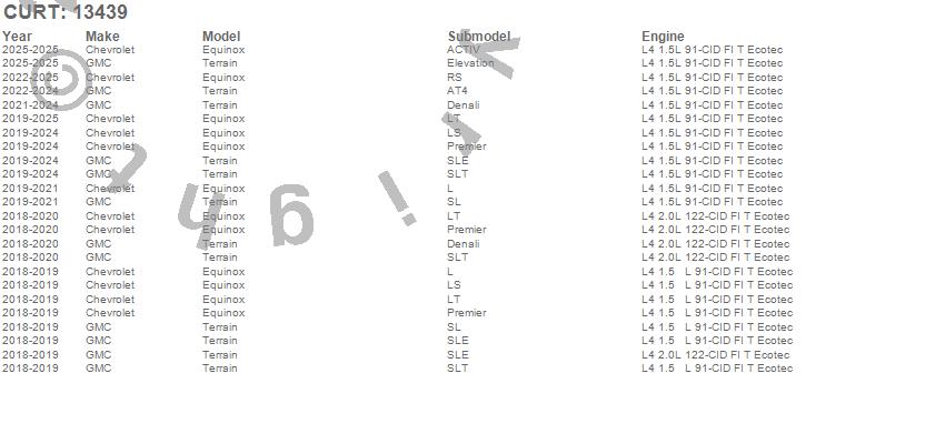 Below is an abbreviated list of applications for the Class III 2 in. Receiver Hitch.Equinox, Terrain, Chevrolet, GMC, 2026, 2025, 2024, 2023, 2022, 2021, 2020, 2019, 2018