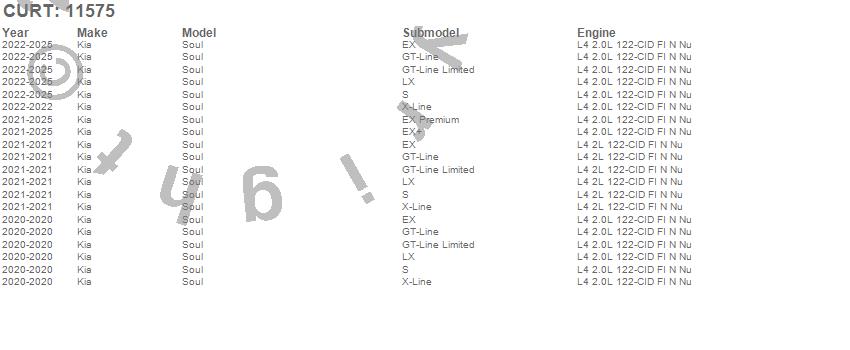 Below is an abbreviated list of applications for the Class I 1.25 in. Receiver Hitch.Soul, Kia, 2025, 2024, 2023, 2022, 2021, 2020