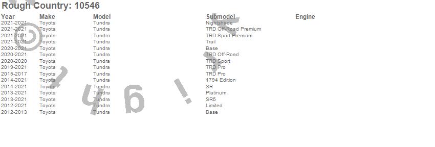 Brand: Rough CountryPart Number: 10546Air Intake Kit Type: Incl. Heat Shield - Intake Tube - Reusable Air Filter - Clamps - HardwareUPC: 843030176228