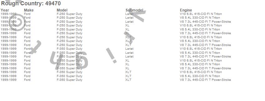 Below is an abbreviated list of applications for the Suspension Lift Kit w/Shocks.F-250 Super Duty, F-350 Super Duty, Ford, 1999