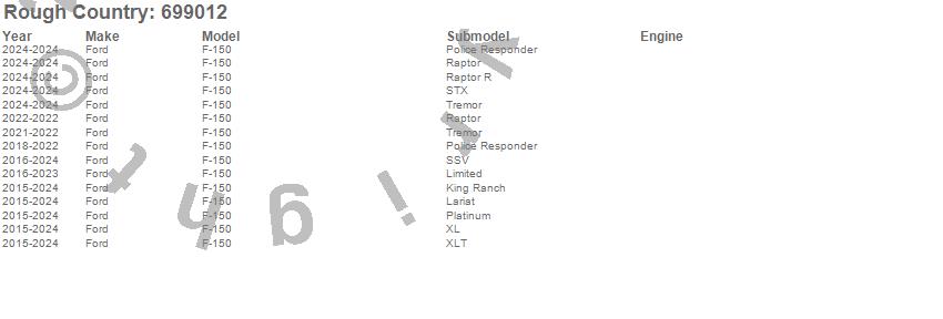 Brand: Rough CountryPart Number: 699012Shock Absorber Type: Rear Adjustable - Fits 3 in. Lift - Extended Length 30.04 in. - Collapsed Length 14.60 in. - 3 Year Manufacturers WarrantyUPC: 843030188863