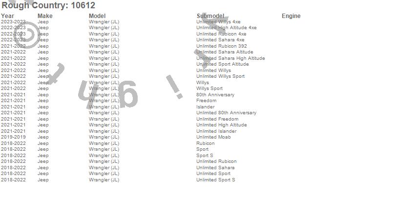 Below is an abbreviated list of applications for the Roof Rack System.Wrangler (JL), Jeep, 2023, 2022, 2021, 2020, 2019, 2018
