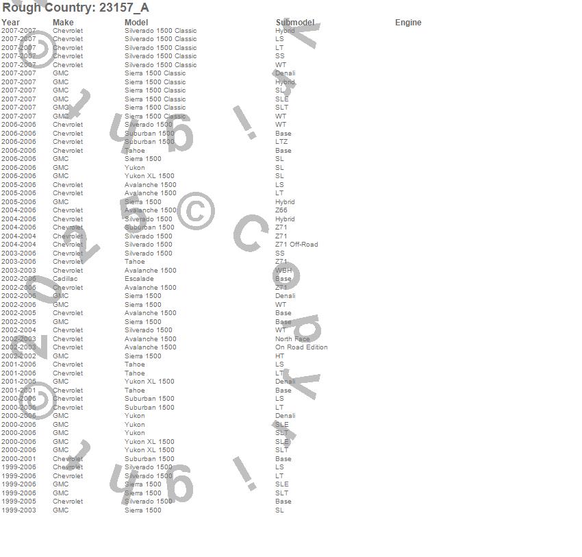 Below is an abbreviated list of applications for the N3 Shocks.Avalanche 1500, Escalade, Sierra 1500, Sierra 1500 Classic, Silverado 1500, Silverado 1500 Classic, Suburban 1500, Tahoe, Yukon, Yukon XL 1500, Cadillac, Chevrolet, GMC, 2007, 2006, 2005, 2004, 2003, 2002, 2001