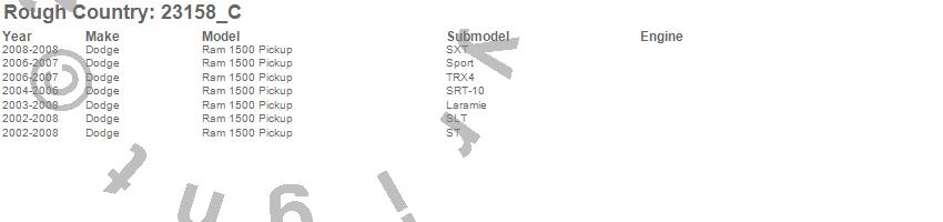 Below is an abbreviated list of applications for the N3 Shocks.Ram 1500, Dodge, 2008, 2007, 2006, 2005, 2004, 2003, 2002