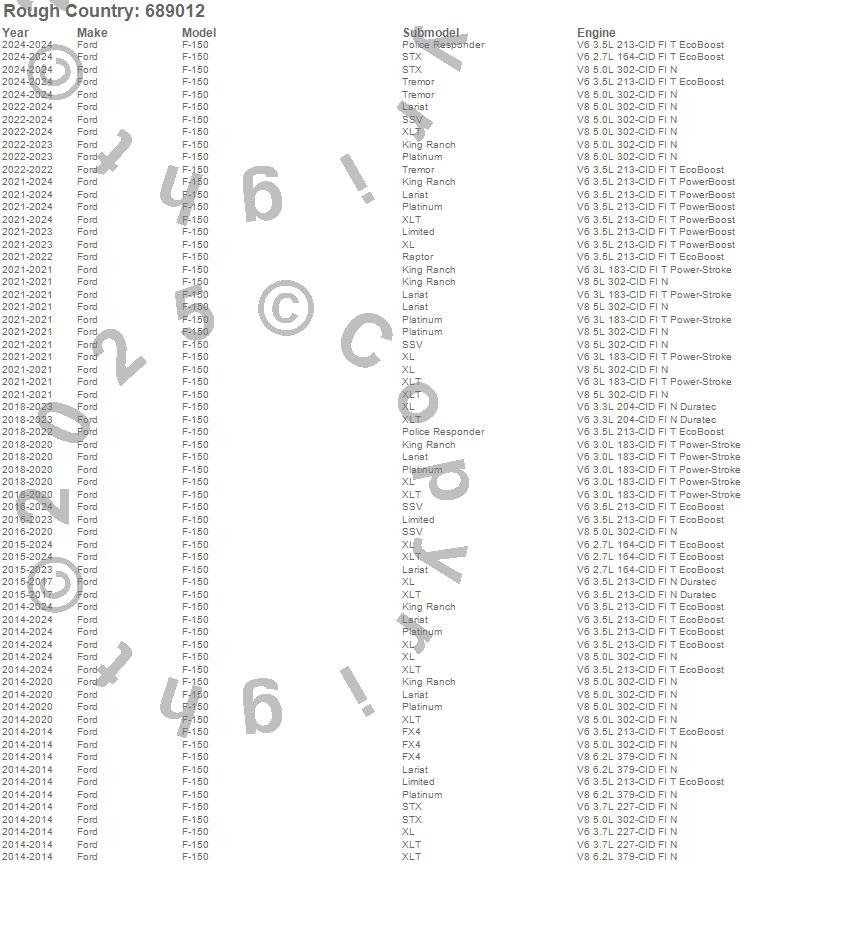 Below is an abbreviated list of applications for the Adjustable Vertex Coilover Leveling Kit.F-150, Ford, 2025, 2024, 2023, 2022, 2021, 2020, 2019, 2018, 2017, 2016, 2015, 2014