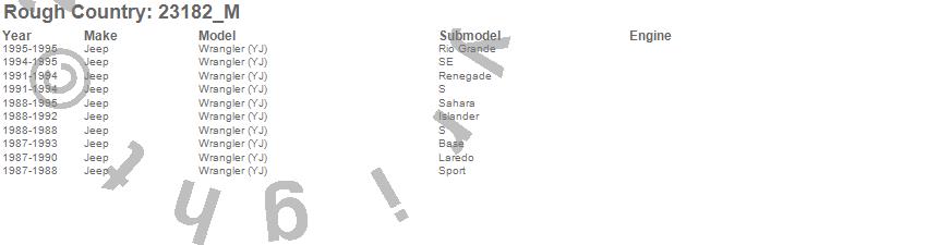 Below is an abbreviated list of applications for the N3 Shocks.Wrangler (YJ), Jeep, 1995, 1994, 1993, 1992, 1991, 1990, 1989, 1988, 1987