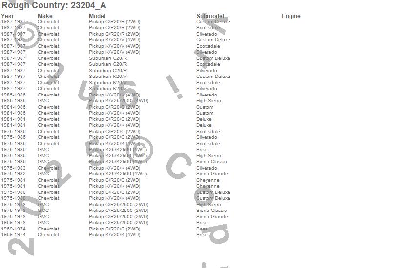 Below is an abbreviated list of applications for the N3 Shocks.C20 Pickup, C25/C2500 Pickup, K20 Pickup, K25 Pickup, K2500 Pickup, R20 Pickup, R20 Suburban, V20 Pickup, V20 Suburban, Chevrolet, GMC, 1987, 1986, 1985, 1984, 1983, 1982, 1981, 1980, 1979