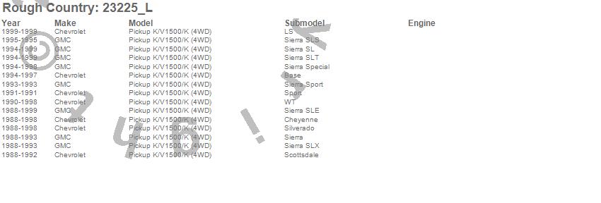 Below is an abbreviated list of applications for the N3 Shocks.K1500, K1500 Pickup, Chevrolet, GMC, 1999, 1998, 1997, 1996, 1995, 1994, 1993, 1992, 1991, 1990, 1989, 1988