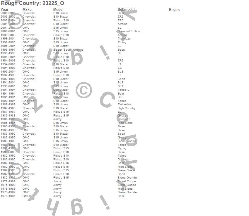 Below is an abbreviated list of applications for the N3 Shocks.Blazer (South America), Jimmy, S10 Blazer, S10 Pickup, S15 Jimmy, S15 Pickup, Chevrolet, GMC, 2005, 2004, 2003, 2002, 2001, 2000, 1999, 1998, 1997, 1996, 1995, 1994