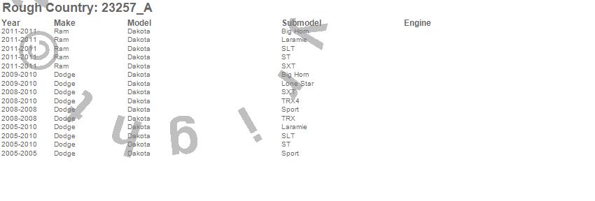 Below is an abbreviated list of applications for the N3 Shocks.Dakota, Dodge, Ram, 2011, 2010, 2009, 2008, 2007, 2006, 2005