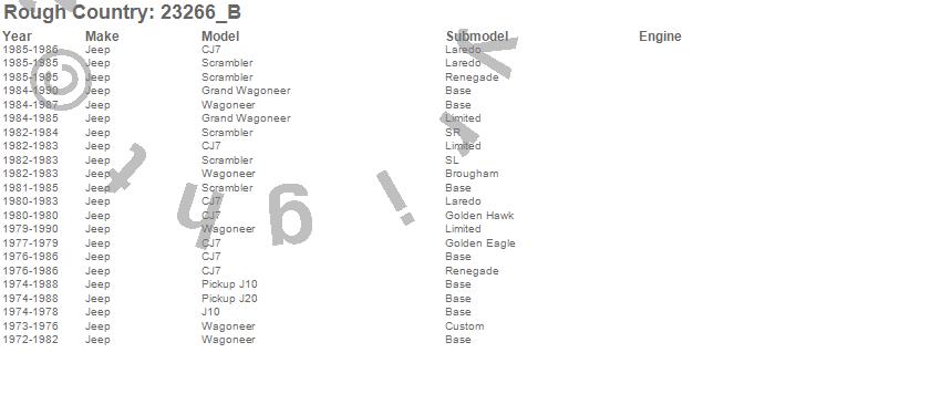 Below is an abbreviated list of applications for the N3 Shocks.CJ7, Grand Wagoneer, J10, J20, Scrambler, Wagoneer, Jeep, 1990, 1989, 1988, 1987, 1986, 1985, 1984, 1983, 1982, 1981, 1980, 1979, 1978