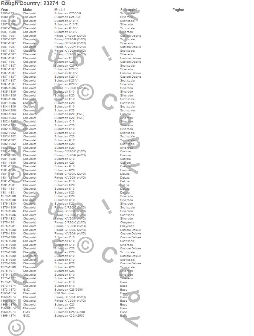 Below is an abbreviated list of applications for the N3 Shocks.C10 Suburban, C20 Pickup, C20 Suburban, C25/C2500 Suburban, K10 Suburban, K20 Pickup, K20 Suburban, K25/K2500 Suburban, R10 Suburban, R20 Pickup, R20 Suburban, R2500 Suburban, V10 Suburban, V20 Pickup, V20 Suburban, Chevrolet, GMC, 1991, 1990, 1989