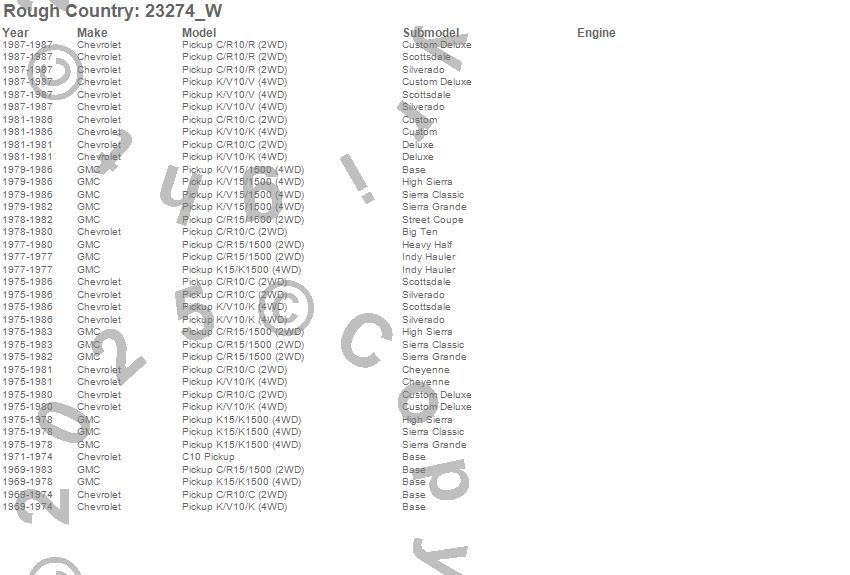 Brand: Rough CountryPart Number: 23274_WShock Absorber Type: Rear - 3.5-4.5 in. - 35 mm. Piston - 54 mm. Shock Body - 36 Kilonewton Tensile Strength - Extended Length 26.08 in. - Collapsed Length 15.65 in.UPC: 843030183226